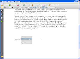 Once you select the TouchUp Object Tool, you will get a black arrow. Right click where you would like your signature to appear and select 'Place Image'.